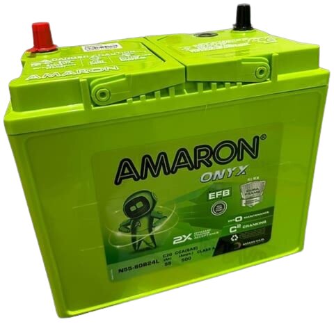 The Amaron 80B24L N55 (55Ah+, ~500CCA) offers N55 performance upgrade for Honda Jazz, Toyota Etios. JIS B24L layout (238x129x227mm), zero-maintenance with extended life for accessory-rich modern vehicles.