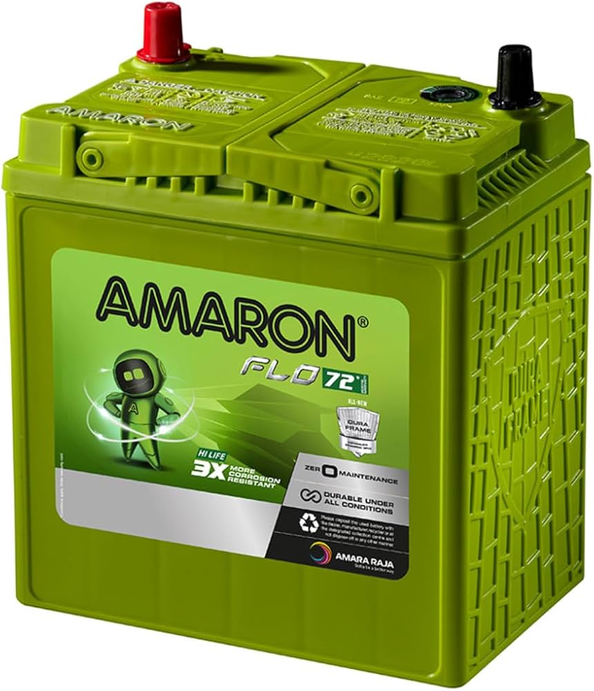 The Amaron BH40B20L (~35Ah, enhanced CCA) features reinforced plates for taxi/fleet use in Maruti Celerio, Swift. Durable casing resists deep discharge, maintenance-free with extended cycle life for high-mileage urban operations.