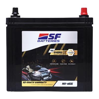 The SF SONIC SF-N55 (48Ah, ~420CCA) offers enhanced cranking for Honda Jazz, Maruti Baleno with N55 footprint (238x129x227mm). Zero water maintenance, heat shield technology handles accessory loads and frequent starts in hot climates.