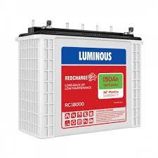 Luminous RC 18000TT PRO (150Ah) excels with tall tubular construction for extended runtime and high-rate discharge. Suited for heavy loads in 1-3KVA systems, low water consumption and corrosion resistance ensuring reliability.
